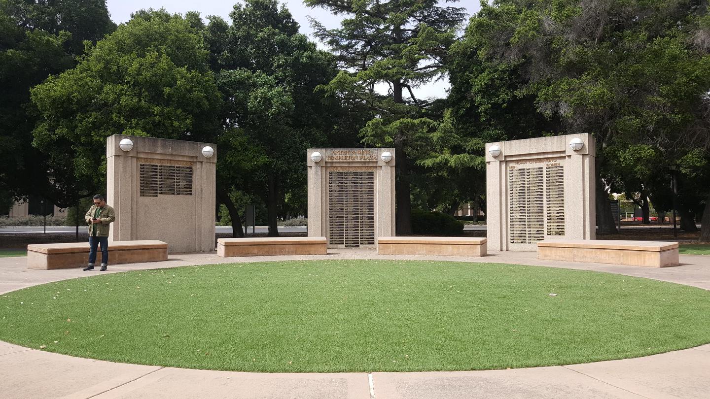 I had gotten there early, so they informed me that the tour wasn’t for another twenty minutes. I chilled at the track close by where I saw three monuments. Shaped almost like an amphitheater, these erected monuments honored Stanford athletes who eventually became US Olympians. While I was staring at the countless names, I heard a crowd of people gathering behind me. I moved to the back a few minutes before 11 when the Visitor Center vomited out tens of people ready to see the Californian university.